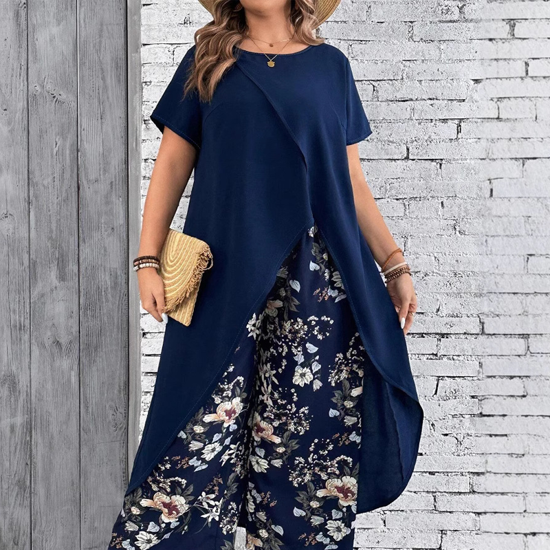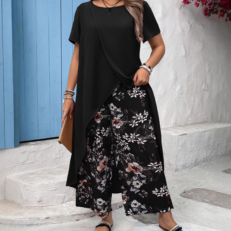 A csomag tartalmazza:1* Női egyszínű felső és nyomtatott nadrág szett
